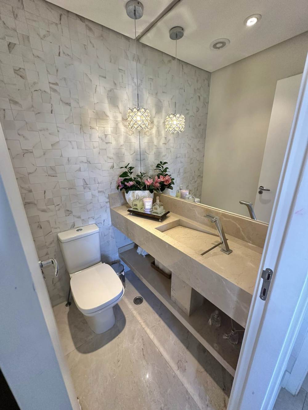 Com 3 dormitórios, sendo 2 suítes, possui 4 banheiros, 3 salas, encontra-se mobiliado, localizado em condomínio.