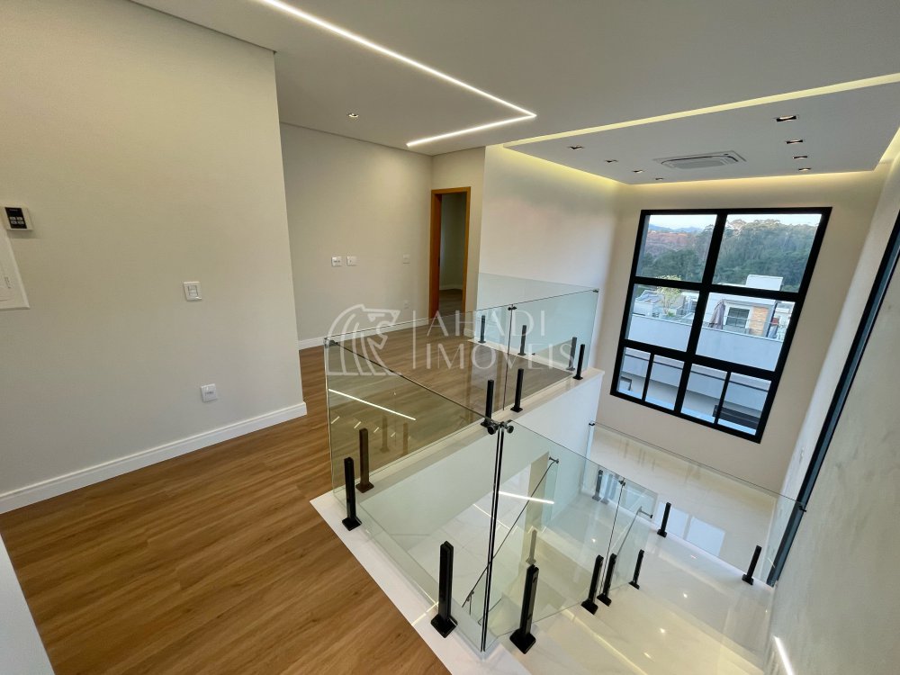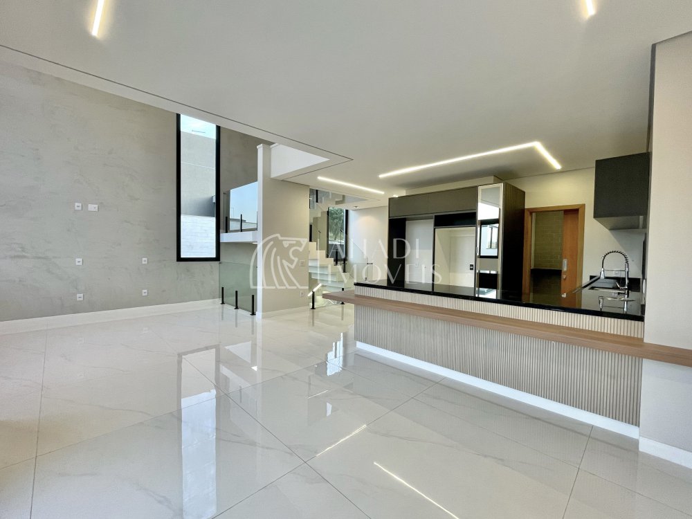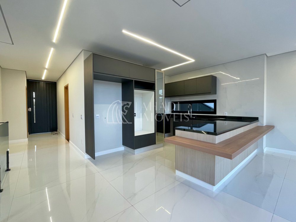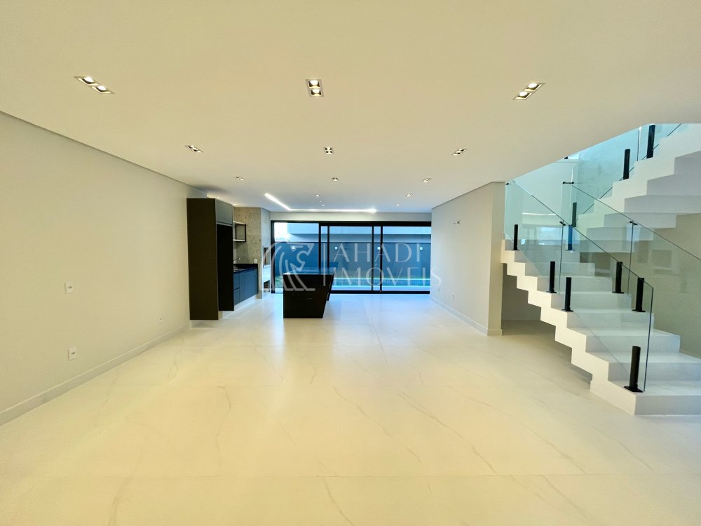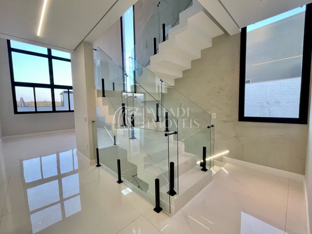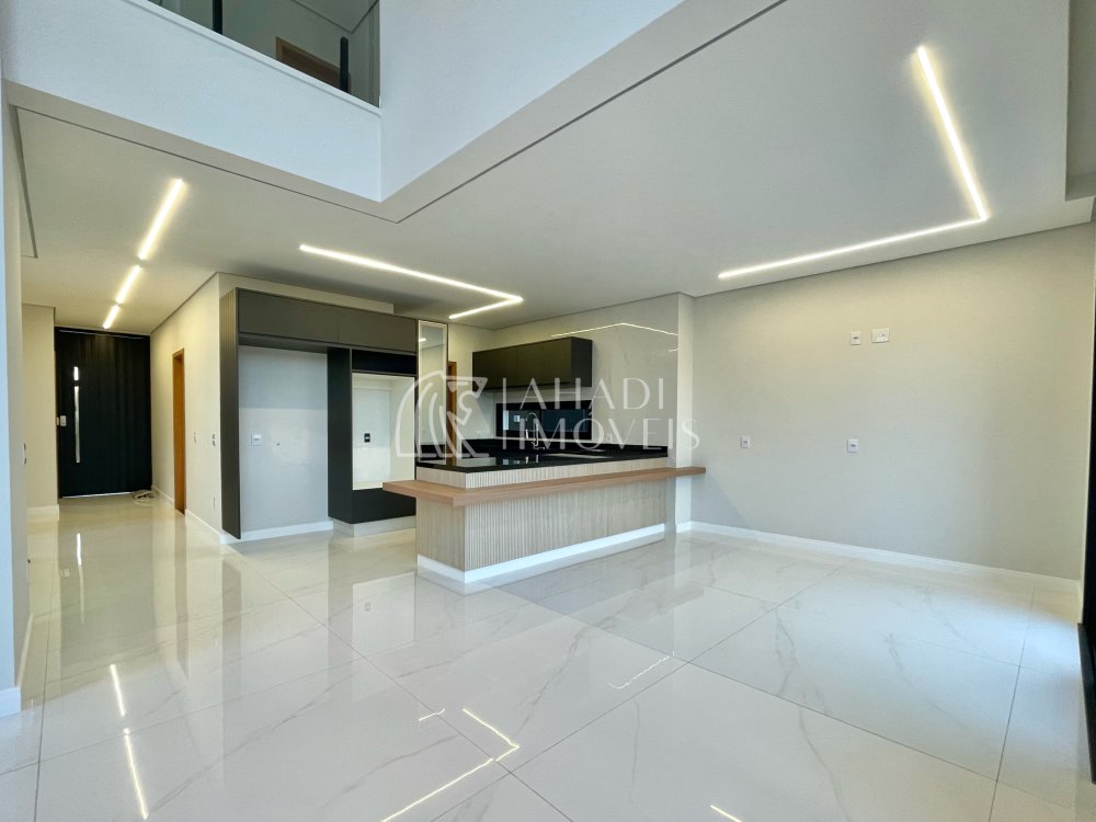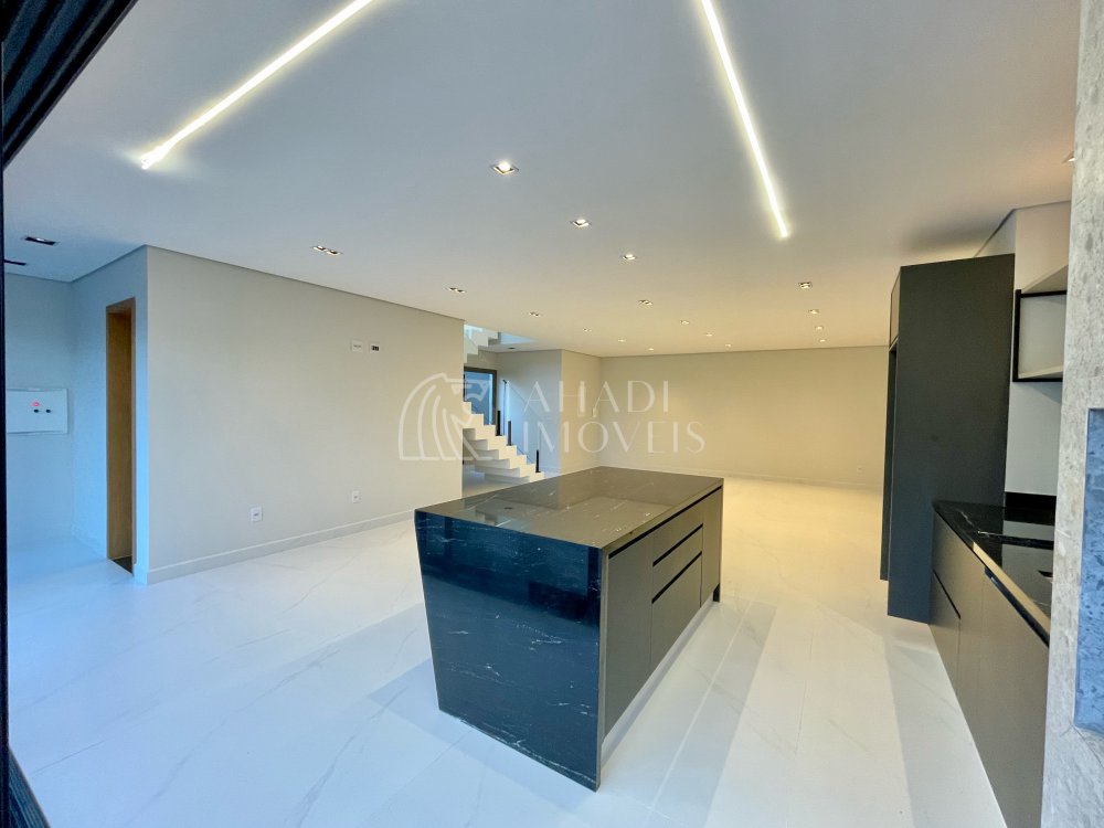 Sobrado com três pavimentos, 3 suítes, sendo uma delas Master com closet, sala com pé direito duplo, iluminação especial e elegante com Led, infraestrutura para ar condicionado e elevador.