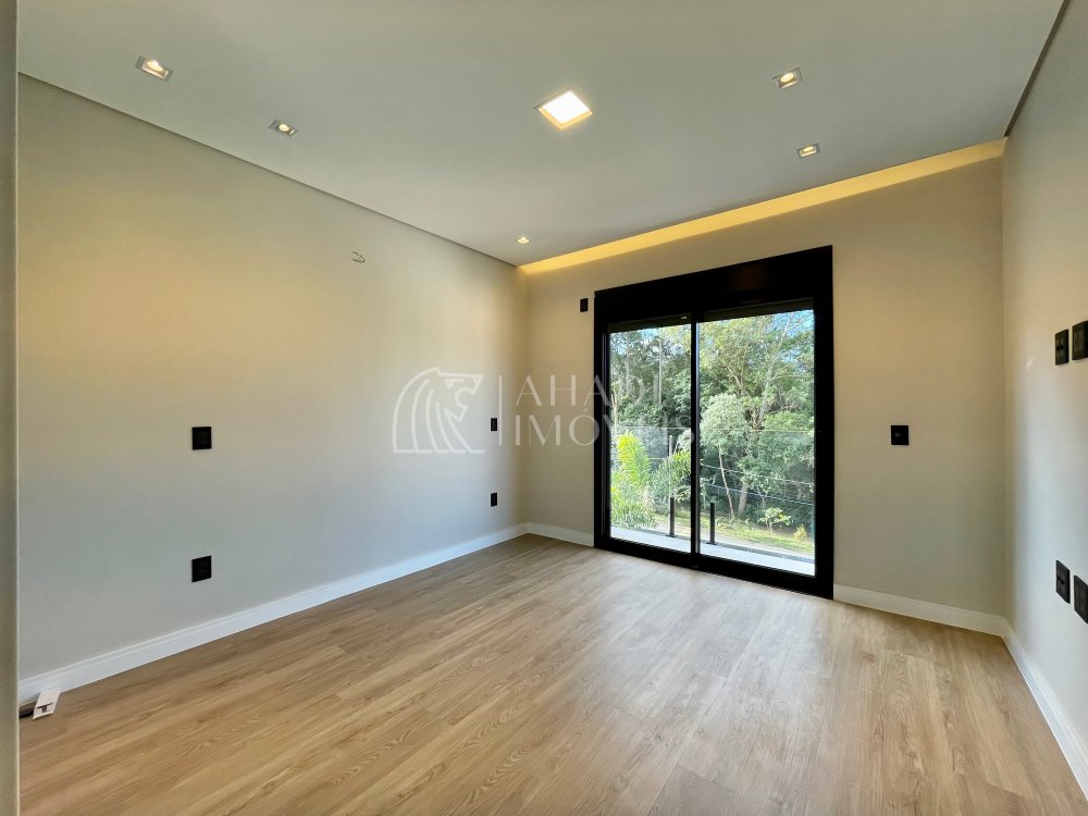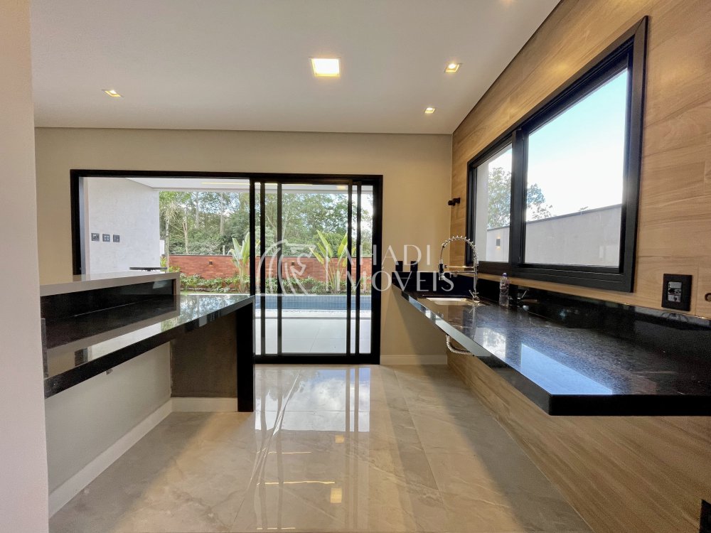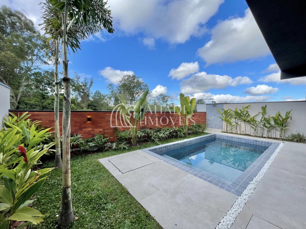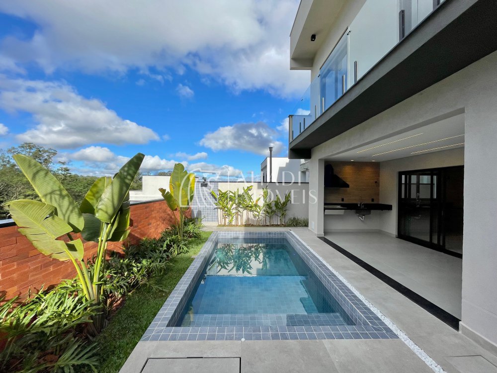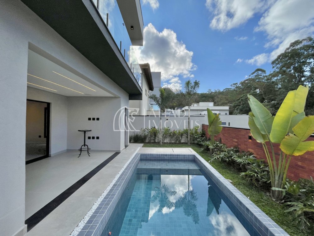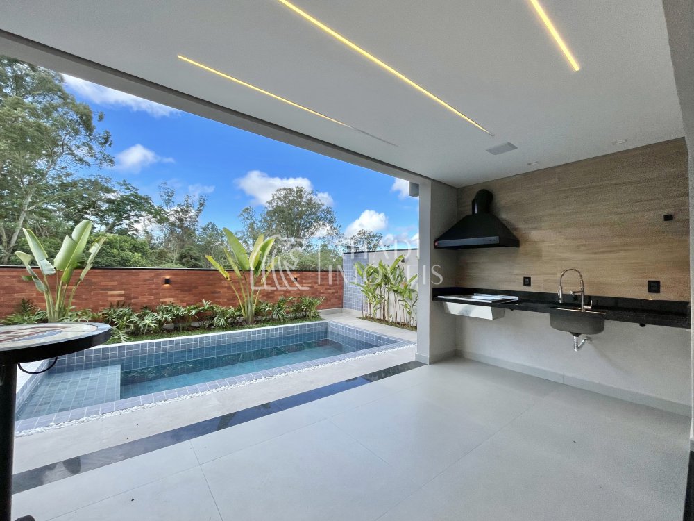 Imóvel novo, construído com materiais de altíssima qualidade e muito bom gosto, sala ampla integrada a cozinha, área gourmet espaçosa, piscina com paisagismo, sala intima, são três suítes, sendo uma delas master. Também conta com uma linda vista para a reserva.