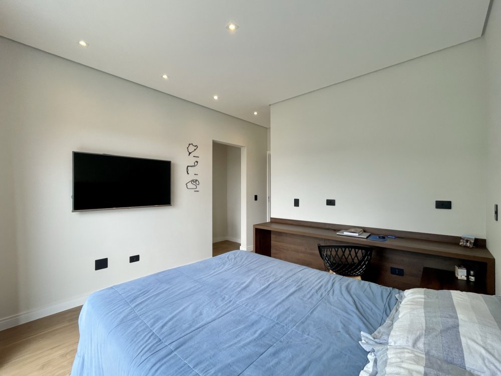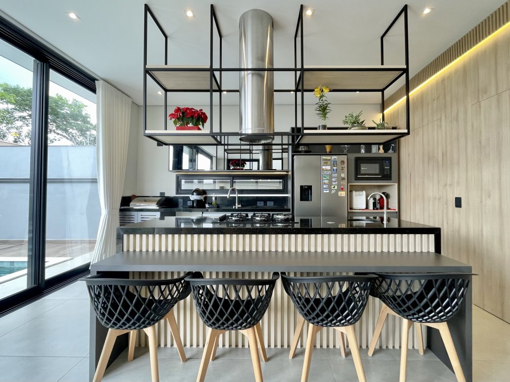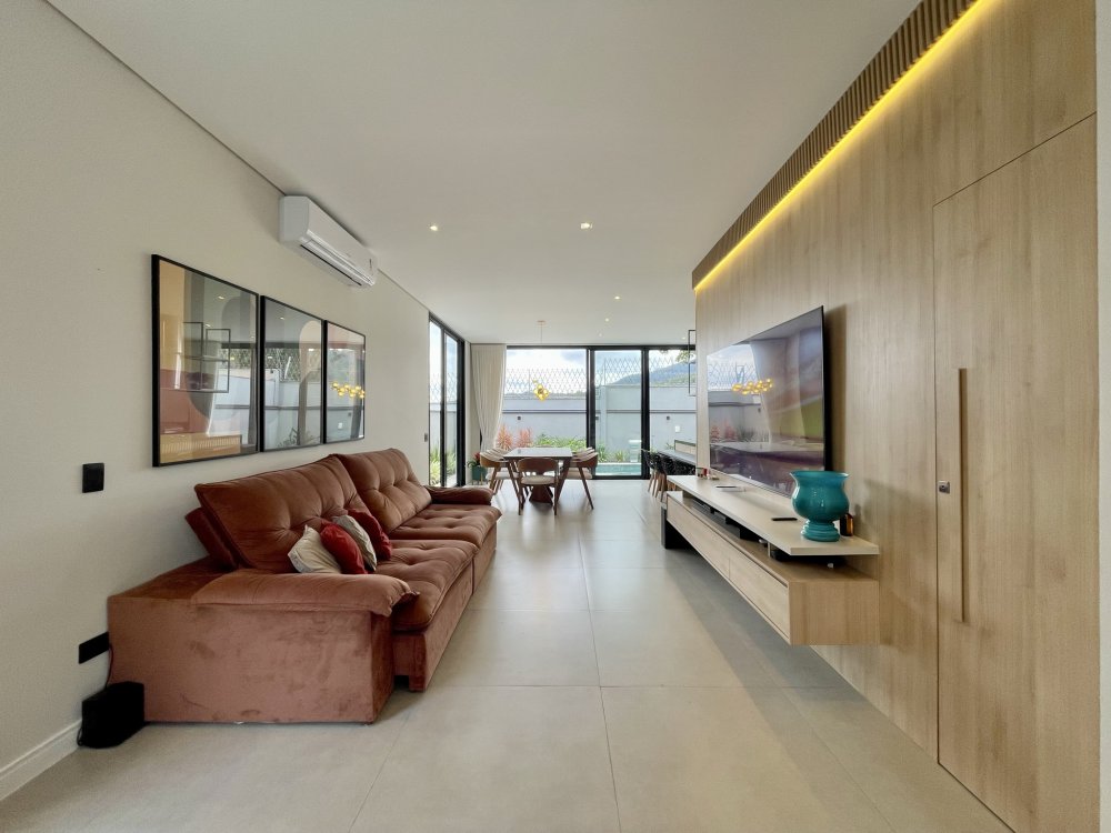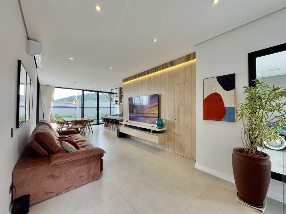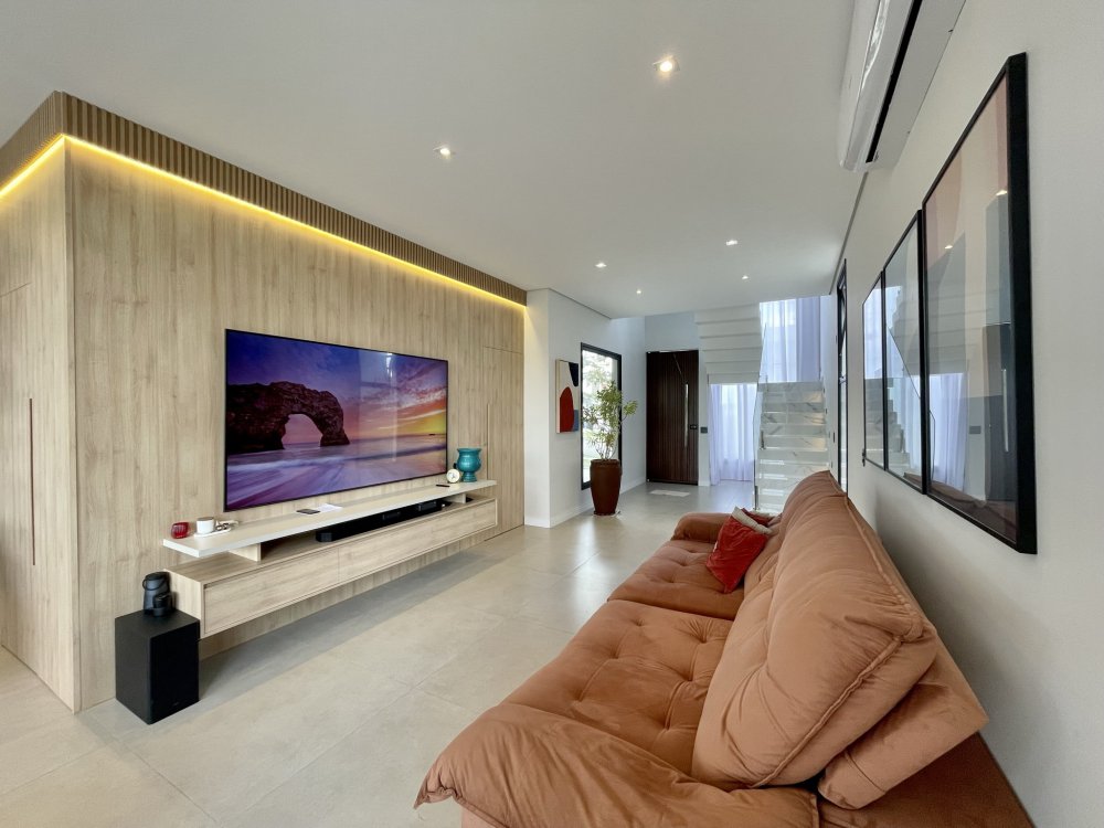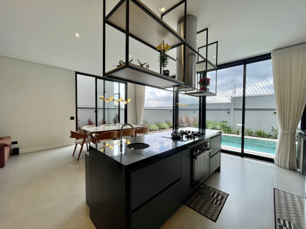 Sala ampla integrada a sala de jantar e área gourmet, ótima iluminação natural, piscina com hidro e cascata, três suítes sendo uma delas com closet amplo, e a outra master com closet e banheira.