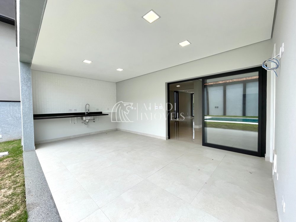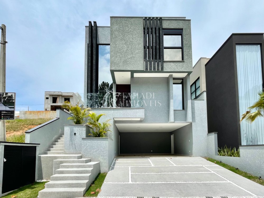 Belíssimo sobrado com arquitetura moderna novinho. São 3 dormitórios com sacada, suíte com closet, ampla sala de estar e jantar, cozinha, lavanderia. Construção com revestimentos de alto padrão, banheiros com cuba esculpida em branco prime equipados com box, chuveiros e torneiras de alta qualidade. Escadas em mármore, guarda corpo em vidro, esquadrias com persianas automatizadas, infra estrutura pronta para ar condicionado em todos os ambientes, automação da residência, instalação de placas fotovoltaicas, iluminação completa interna e externa em led. Área gourmet e piscina fantástica em meio ao jardim.